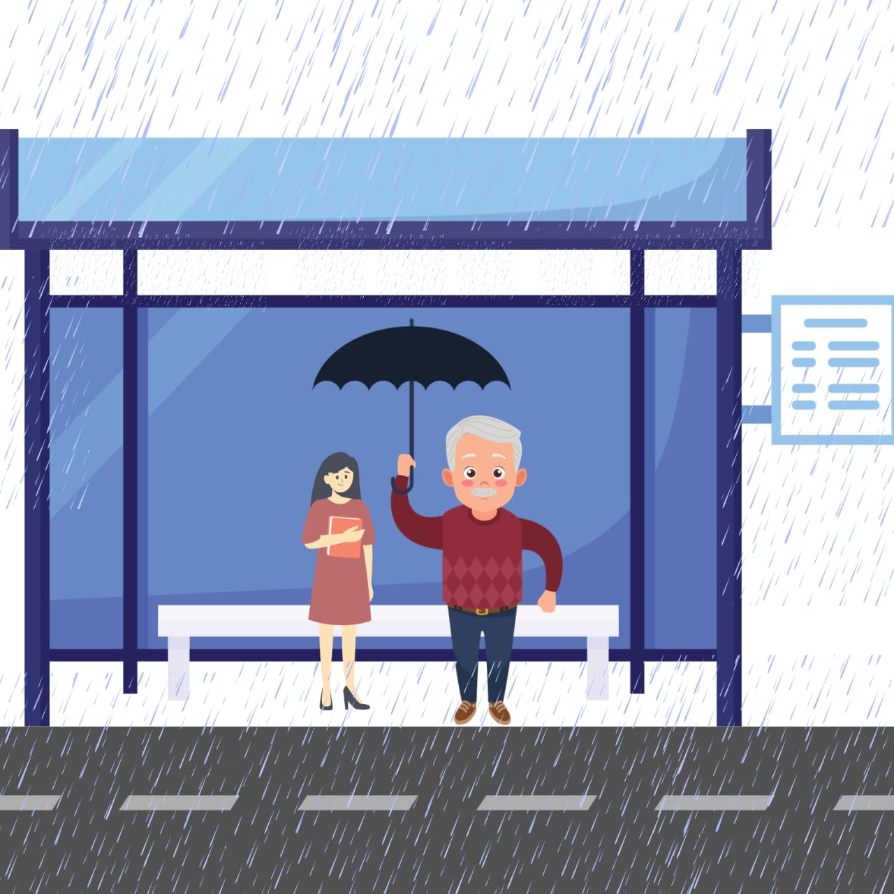 Pria tua itu tertawa kecil. “Aku sudah terbiasa dengan hujan. Lagipula, rumahku tidak jauh dari sini.”